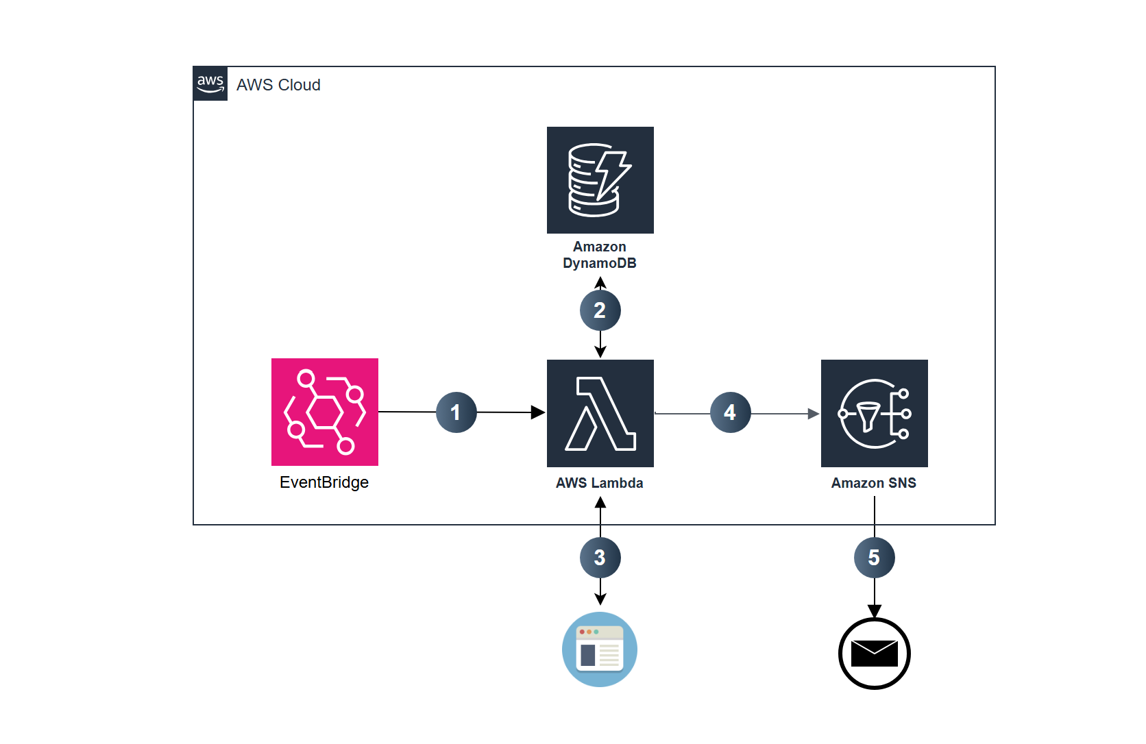 Step 1: Amazon EventBridge sets up a periodic schedule for our price checking process.
