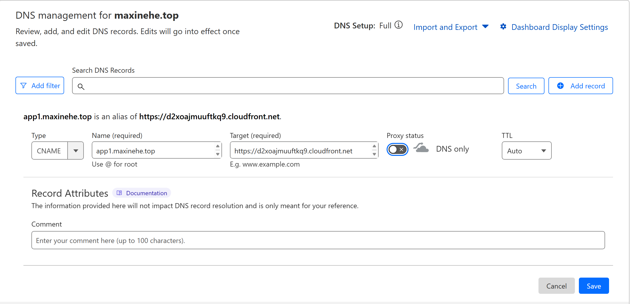 - Add a new DNS record with the following details: