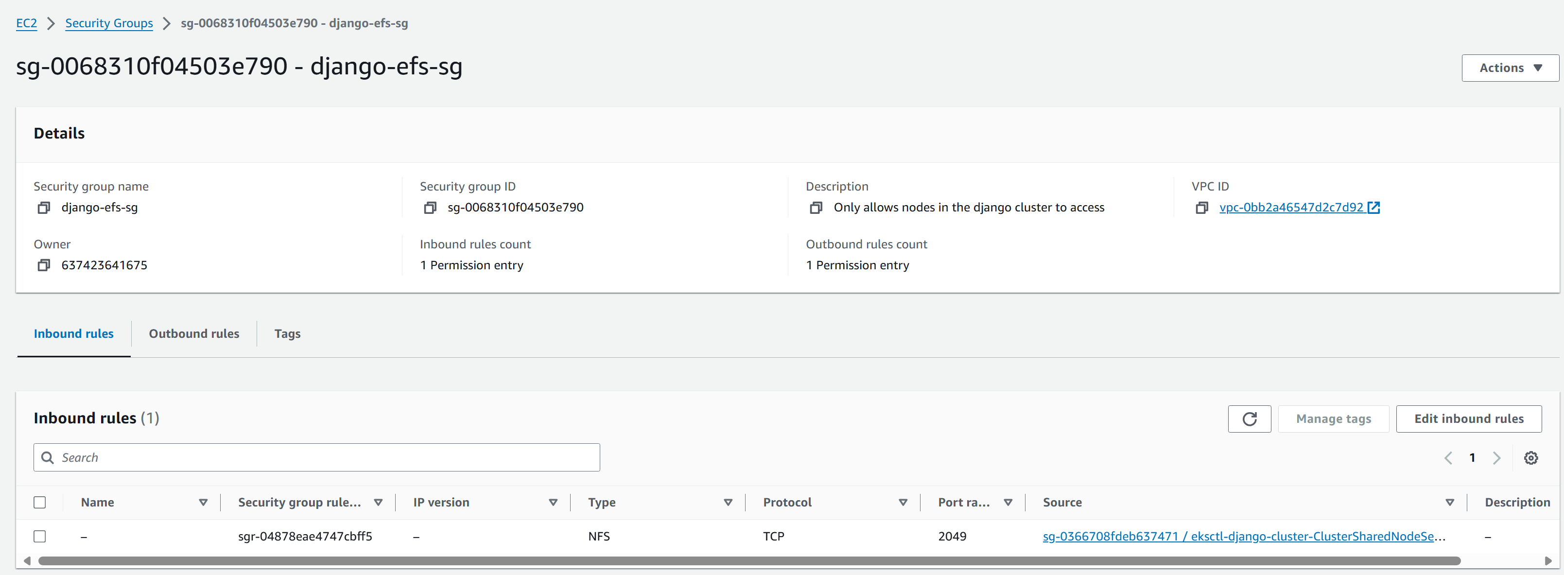 One of the most significant challenges I encountered was configuring storage. Initially, I considered using S3 as the backend for PersistentVolume, attracted by its high availability and cost-effectiveness. However, I discovered that S3-CSI lacks full POSIX filesystem support, which is crucial for certain operations like collecting Django static files. This led me to opt for EFS, which, while different from my initial plan, proved to be a robust solution for persistent storage.
