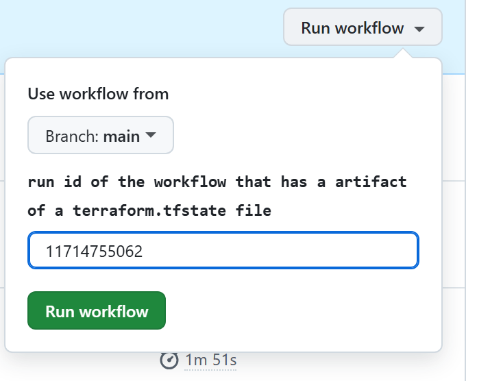 GitHub Actions allows workflows to access artifacts from previous workflows as long as they haven’t expired or been deleted. You can reuse the terraform.tfstate artifact from the earlier workflow that created the cluster.