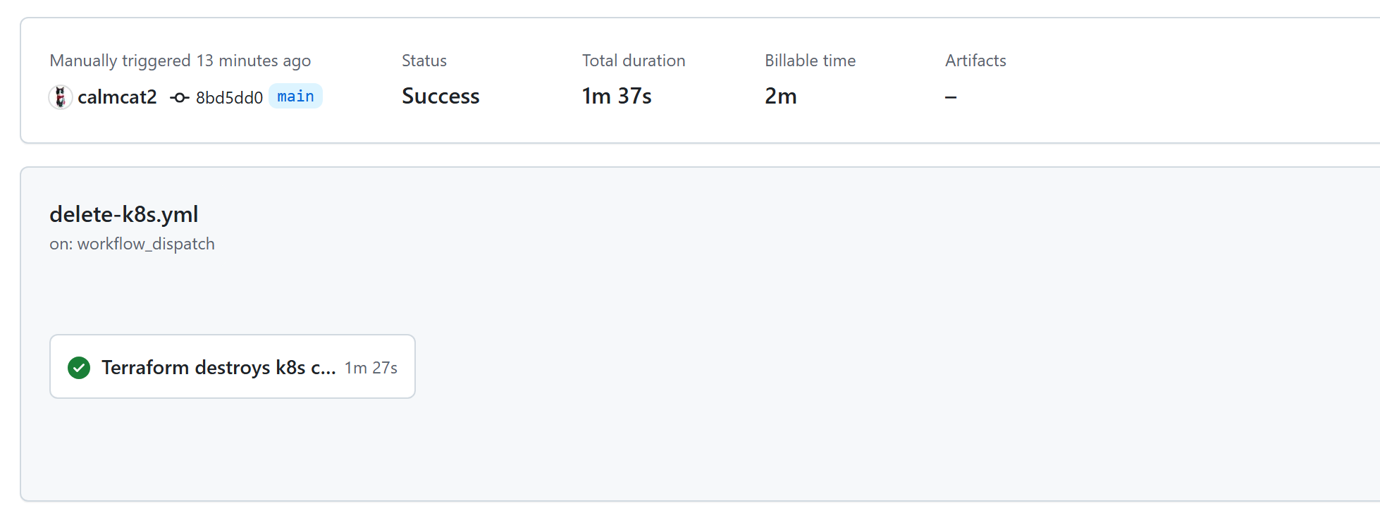 The workflow to delete a Kubernetes cluster created by Terraform is straightforward. All you need is the Terraform state file that was generated during the cluster creation process. This file contains the current state of your infrastructure and is essential for Terraform to know what resources to destroy.